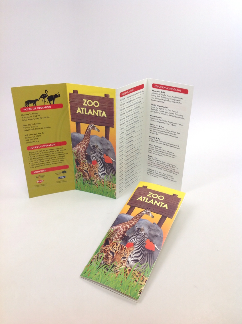 Created a brochure that would compliment the signage of the Atlanta Zoo. The friendliness and excitement of the zoo was showcased by using bright colors and an array of zoo animals. I also incorporated a zoo trail so the visitors can have a map of the different habitats.